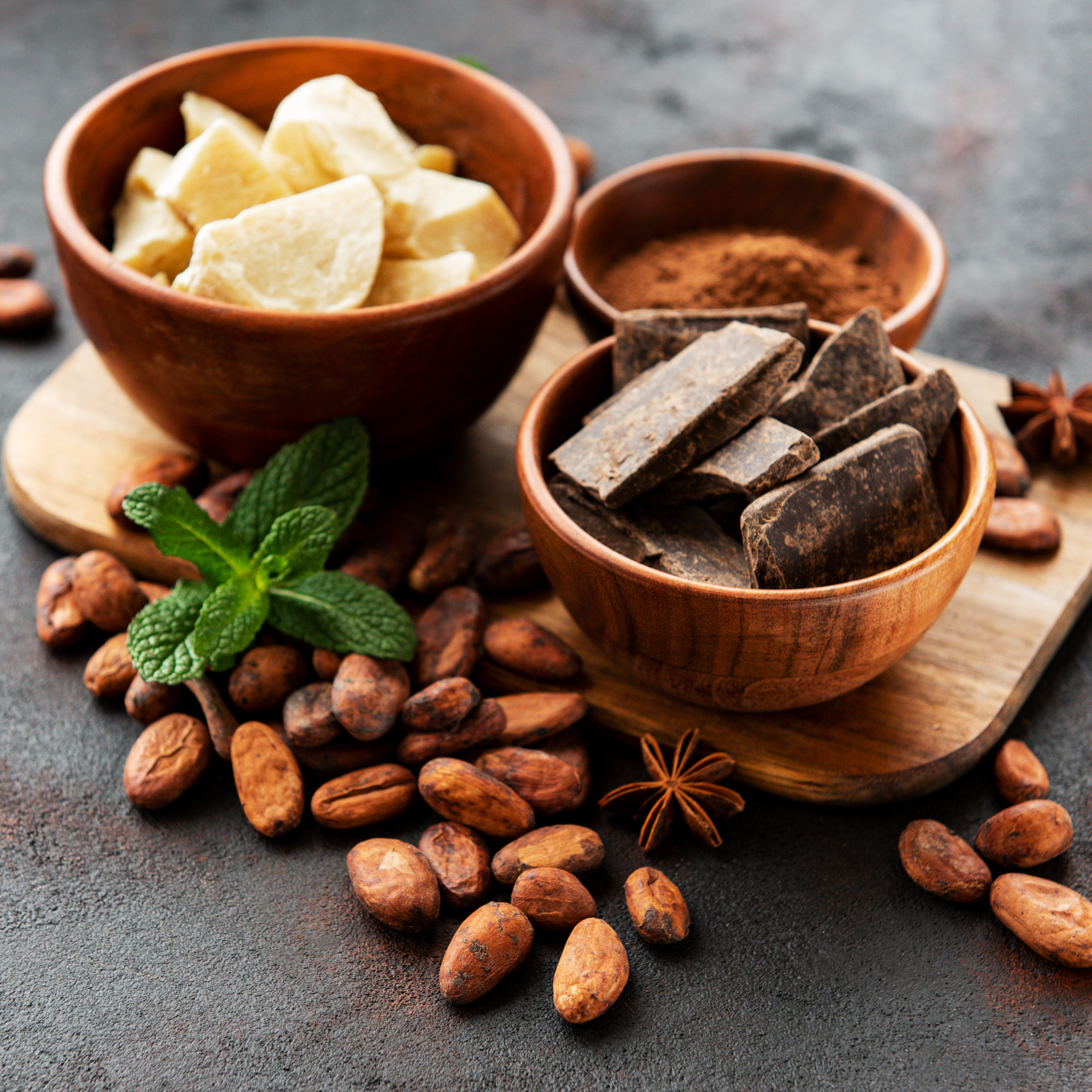 This rich hydrating butter naturally contains Vitamin E and is pressed from the roasted seeds of the Cacao tree. It softens at body temperature and adds a nourishing, creamy consistency to our balms.